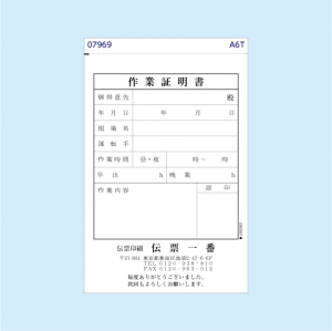 作業証明書 A6縦型(100×146mm)