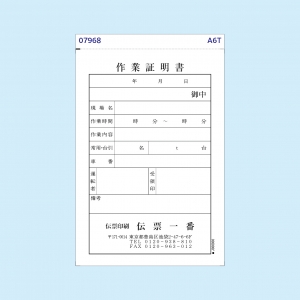 作業証明書 A6縦型(100×146mm)