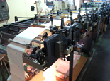 | 丁合機 | シートで印刷された物を機械上に並べ組み合わせます。設定した組数で表・裏表紙が自動で入ります。それ以上の仕事はできません。 |